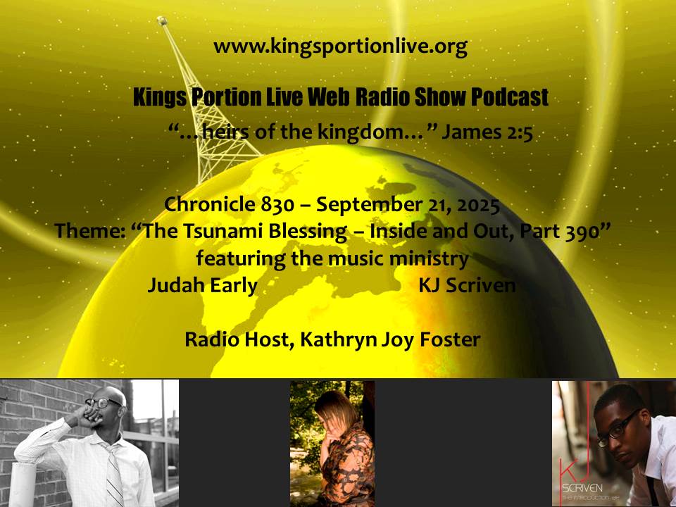 Sponsor: Kathryn Joy Foster Music Ministries, (KJFMM) and the Fire-Alive Ministry Partners New interactive website: www.kingsportionlive.org store: www.kingsportionlive.com Invite Jesus Christ into your heart today Prayer for Salvation. Listen to Judah Early and KJ Scriven on Heaven Drenched Online Radio Station (HDOR) 24/7/365 internet radio station.