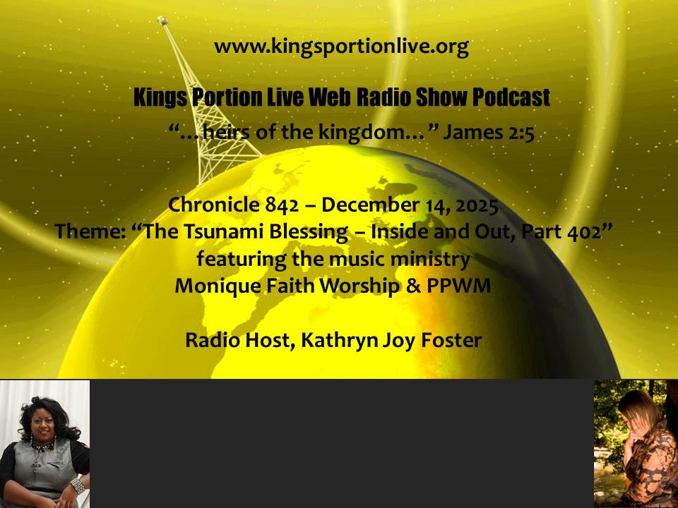 Kathryn Joy Foster YouTube Channel - Videos Kings Portion Web Radio Show Podcast December 14, 2025 on YouTube December 14, 2025 kingsportion Visit Kathryn Joy Foster Youtube Channel The Tsunami Blessing Inside and Out, Part 402 ScripturesDownload