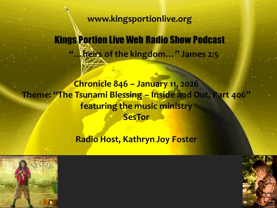 Sponsor: Kathryn Joy Foster Music Ministries, (KJFMM) and the Fire-Alive Ministry Partners New interactive website: www.kingsportionlive.org store: www.kingsportionlive.com Invite Jesus Christ into your heart today Prayer for Salvation. Listen to SesTor on Heaven Drenched Online Radio Station (HDOR) 24/7/365 internet radio station.