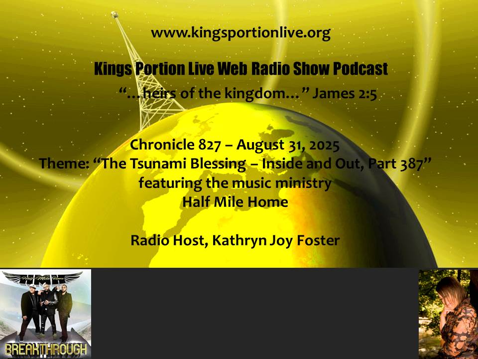 Kathryn Joy Foster YouTube Channel - Videos Kings Portion Web Radio Show Podcast August 31, 2025 on YouTube August 31, 2025 kingsportion Visit Kathryn Joy Foster Youtube Channel The Tsunami Blessing Inside and Out, Part 387 ScripturesDownload